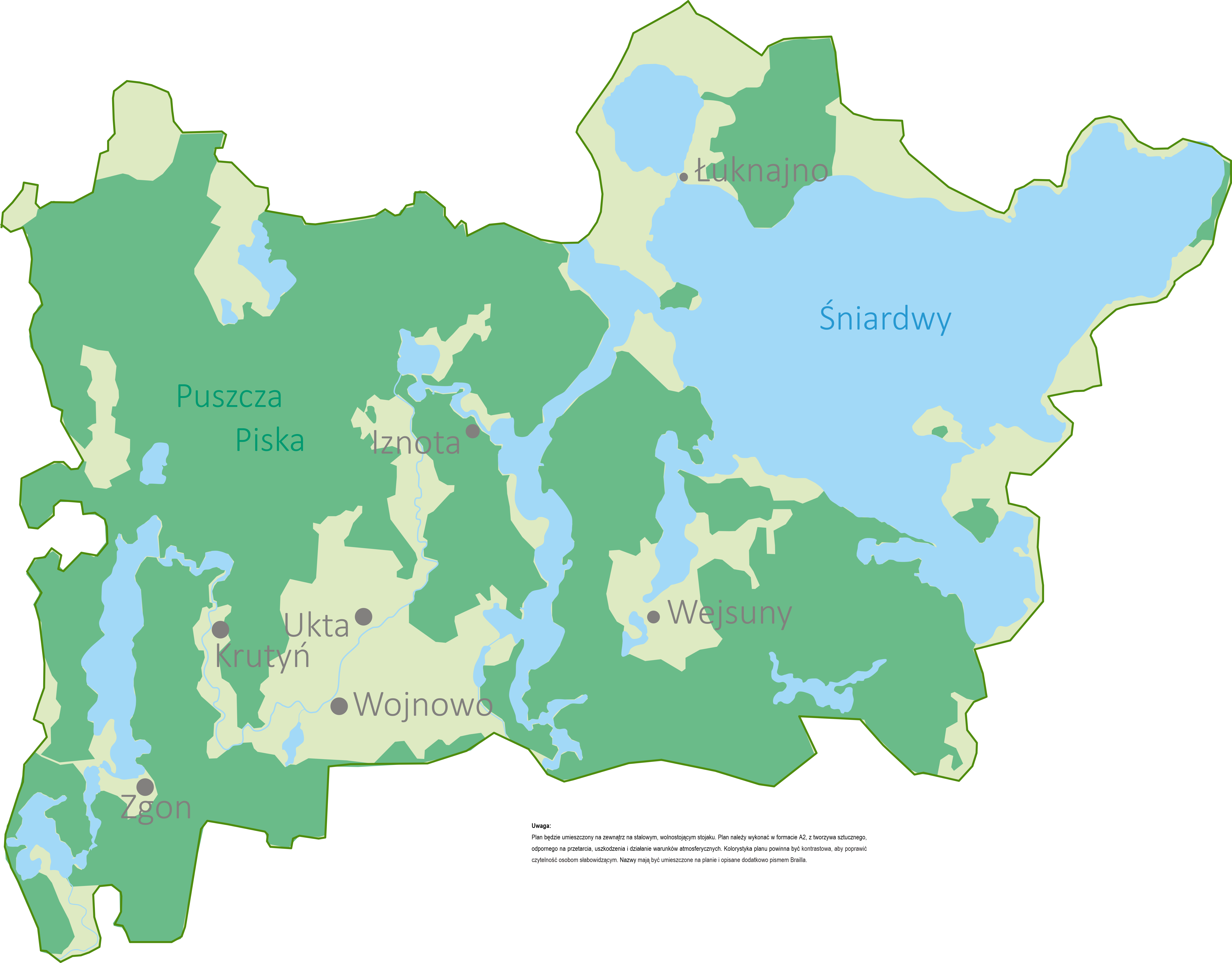 - 3 szt. planu przedstawiającego teren Mazurskiego Parku Krajobrazowego- zgodnie z Załącznikiem Nr 2 do niniejszego zapytania ofertowego.